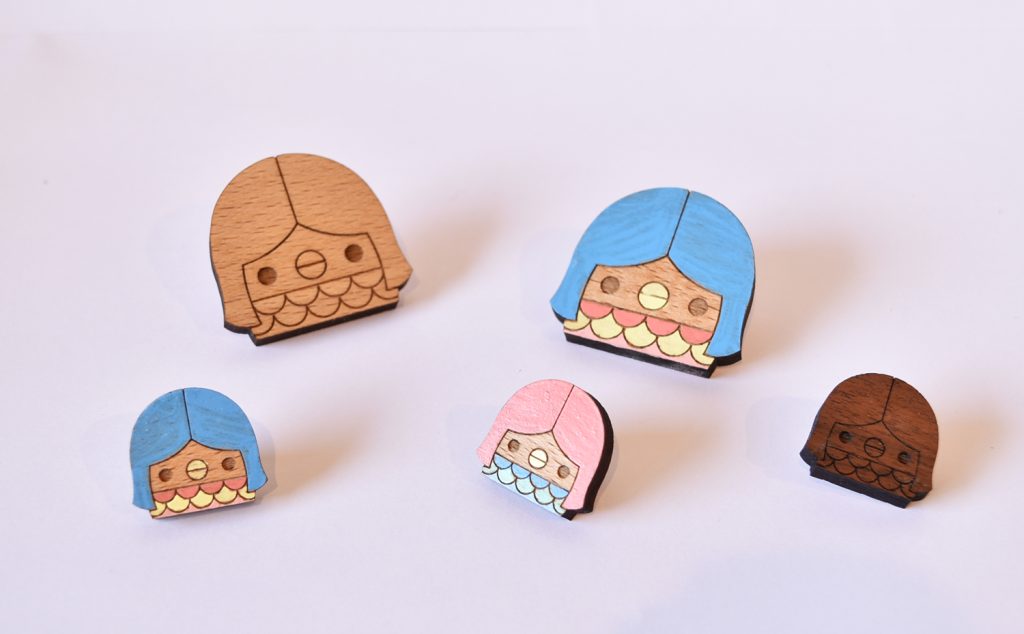 ピンバッジ・ストラップ・しおり・文房具etc・・・。お客様の大切なブランドロゴやキャラクターを小さな木の雑貨にいたします。規格品へのラベリングや刻印だけでなく、オリジナル造形の制作も承ります。