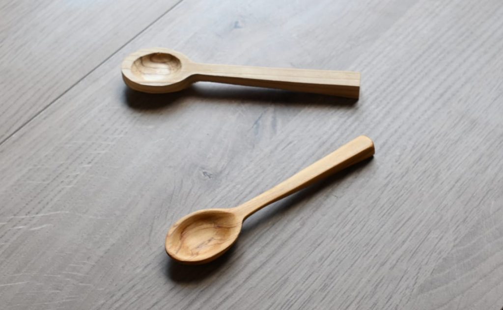 廃棄木材や不要になった家具、家の柱などを使用して、新たな製品に生まれ変わらせます。写真は某・商業施設で使用した杉の木を使って、スプーンを制作。ワークショップでたくさんの親子に参加してもらいました。
